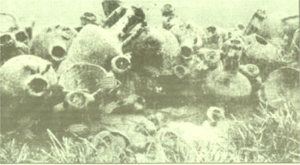 Above: THE KYRENIA CARGO: This is the underwater sight that led a Cypriot sponge diver to discover the Kyrenia wreck in 1965.
